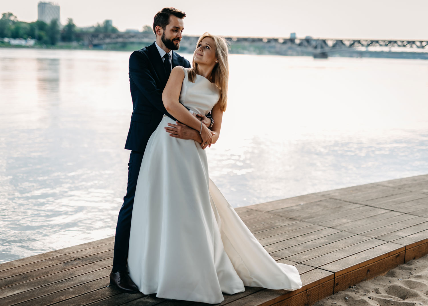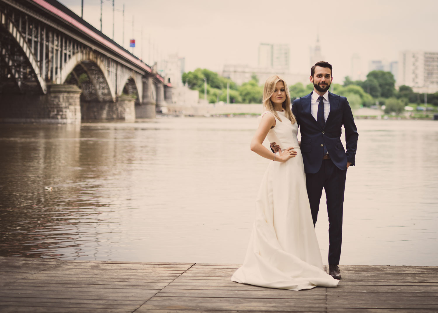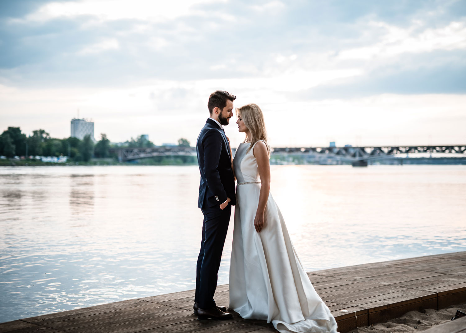 Z Adamem i Marleną wybraliśmy na sesję ślubną prawobrzeżną Warszawę myśląc o zielonym Skaryszaku i dzikich wiślanych plażach. I to co chciałem podkreślić, podczas takich miejskich sesji jest mnóstwo energii, śmiechu i ludzkiej życzliwości płynącej od przypadkowych przechodniów. Ta energia doskonale współgrała z uśmiechami i radością Marleny i Adama. Wiedzieliśmy, że z taką parą i w takiej okolicy nie może być mowy o nudzie i rutynie, a my nie możemy zaliczyć czasu spędzonego na sesji jako pracy tylko jako świetnej zabawy.